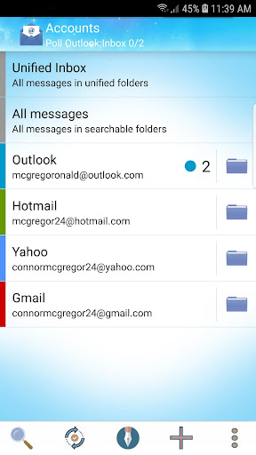 Manage all your email accounts at once! Whether it's Hotmail, Gmail, Yahoo, Outlook, AOL, iCloud, Live, Exchange or GMX...