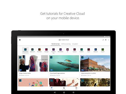 Take Creative Cloud with you to manage your files, view tutorials, and discover apps on the go. It's all on your device, wherever you are.