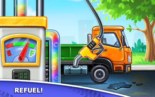 Fuel of your truck is low? Never mind because you can fuel your transport truck games for kids on the gas station. At first find where to connect fueling nose trucks for kids games for boys games! It trains truck games children's attentiveness learning games for kids. Press the button and watch your car`s fuel level rising up!